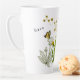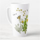 Große Latte Tasse für den Naturliebhaber. Pflanze aus Kronleuchter mit gelben und blauen Schmetterlingen umschließen eine weiße Tasse. "Rett die Lüster" ist der gedruckte Text, der über die Oberseite und die Unterseite des Designs geht. Gib jemandem, der glaubt, dass dieses "Unkraut" ein nützliches Nahrungsmittel für Frühlingsinsekten ist.