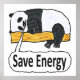Rett Energy Panda zeigt einen flachen Panda mit der Redewendung "Rett Energy" unten. Eine Empfehlung für Energieeffizienz, dieser Panda ist eindeutig in der Energie rettend Modus.