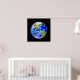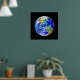 Rett es! - Umweltbewusstsein Poster mit dunkelblauen Buchstaben über einer farbenfrohen Planeten-Erde-Grafik.