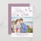 Eleganter und romantischer Rett The New Date - Hochzeitsfotokarte, mit einer wunderschönen und zarten, staubigen lila Orchideen-Blumenlinie, die im oberen Teil auf weißem Hintergrund zeichne. Einfach personalisierbar, indem Sie eine Ihrer Lieblings-Verlobung-Horizontalbilder hinzufügen und die Vorlagenfelder im unteren Band mit Ihren Namen, Datum und Position in einem modernen und einfachen lila All-Caps-Schriftart bearbeiten. Für weitere Personalisierungen oder Sonderanfertigungen, kontaktieren Sie mich bitte unter acherryonthecake@hotmail.com (bitte 1-2 Arbeitstage). Diese Save the Date Karte ist Teil der Kollektion "Delikate Orchideen - Dusty Lila Hochzeitssuite" mit vielen aufeinander abgestimmten Gegenständen, um eine einzigartige Hochzeitssuite zu schaffen.