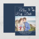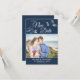 Eleganter und romantischer Rett The New Date - Hochzeitsfotokarte, mit einer wunderschönen und zarten Blumenlinie, die auf dem oberen Teil über einem klassischen preußisch-blauen Hintergrund zeichne. Einfach personalisierbar, indem Sie eine Ihrer Lieblings-Verlobung-Horizontalbilder hinzufügen und die Vorlagenfelder im dunkelblauen Unterband mit Ihren Namen, Datum und Position in einem modernen und schlichten Schriftart mit weißer All-Caps bearbeiten. Für weitere Personalisierungen oder Sonderanfertigungen, kontaktieren Sie mich bitte unter acherryonthecake@hotmail.com (bitte 1-2 Arbeitstage). Diese Save the Date-Karte ist Teil der Sammlung "Delikate Orchideen - Preußische Blaue Hochzeitssuite" mit vielen aufeinander abgestimmten Gegenständen, um eine einzigartige Hochzeitssuite zu schaffen.