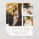 Elegant und einfach rettete unsere Datumsanzeige. Diese Vorlage bietet Platz für 3 Ihrer Lieblings-Fotos in Weiß mit cooler handgeschriebener Kalligraphie in Gold. Einfach mit Ihren eigenen, einzigartigen Details bearbeiten.