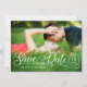 Postkartenankündigung Ihres Hochzeitdatums. Benutzen Sie Ihr vollflächiges Bild mit "Rett unser Datum" überlagert auf dem Foto. Passen Sie Ihre Namen und das Datum auf Vorder- und Rückseite an.