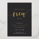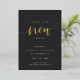 Müssen Sie Ihre Hochzeit verschieben oder verschieben? Mit diesen eleganten Karten in Schwarz und Weiß mit echten Goldfolien-Buchstaben-Akzenten lasse der Gast alles Wissenswerte. Design-Features "rett unser neues Datum" an der Spitze mit Ihrem neuen Hochzeitstag und Hochzeitswebsite unten.