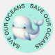 Blue Stickers mit einem niedlichen Bild eines Whales in der Mitte. Rett Ozeane in einem Kreis um die Kanten gedruckt. Aufkleber zum Thema Umwelt und Grün. Ideal für all Ihre Stationären, Handwerkskunst oder Schulprojekte. Kleben Sie Ihre Lunchboxen oder Wasserflaschen an.