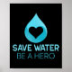 Rett Wasser - sei ein Held. Wasser rettend Umwelt Poster