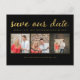 Herrliche Imitate Goldfolien-Typografie auf der Vorderseite dieser Designer-Postkarte, in die Sie mit 3 eigenen Verlobung/Hochzeit-Foto-Portraits hochladen können. Einfach und schnell personalisieren Sie diesen Designer professionell Save the Date Postcard, indem Sie einfach den Beispieltext tippen und eigene Fotos hinzufügen. Elegante, schicke, einfache und klassische Goldschrift/kursive Typografie. Die fabelhafte Fotografie, die in diesem Foto-Template verwendet wird, ist dank dem talentierten Fotografen Leslie von Leslie Spurlock Fotografy Pty Ltd - Texas, USA.