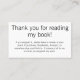Eines der schwierigsten Dinge, die ein Schriftsteller tun muss, ist, für Rezensionen fragen. Wenn Sie diese Karte in jedes Buch stecken, das Sie persönlich verkaufen, kann das ein bisschen leichter werden, da viele Leser nicht erkennen, wie viel es für einen Autor bedeutet, zu hören, dass er Ihr Buch liebt. Dieses schlanke Design wird die Leser ermutigen, durch und erlaubt es Ihnen, nachdenklich zu sein, ohne zu viel nachdenken zu müssen. ;) Schließlich geht ein kleiner Dank weit.
