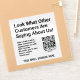 Ermuntern Sie Ihre kleinen Geschäftskunden, eine Rezension verlassen. Überschrift lautet: "Schauen Sie, was andere Kunden über uns Sprichwort sind". Ändern Sie den Wortlaut in Anzug Ihrer Anforderungen. Ändern Sie den Link QR Code auf den Link, der zu Ihrer eigenen Rezensionsseite führt. Wenn Google dies tut, erhalten Sie Ratschläge: https://tinyurl.com/5ydtb22k