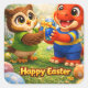 Make a big impression this spring with these large 3 in.² stickers featuring the delightful Rex and hoot this sheet of six high-quality stickers showcases Rex the T-Rex and hoot the owl sharing Easter joy printed on premium glossy white paper. These oversized stickers are perfect for decorating larger gift boxes creating DIY party favours or labelling Easter treat buckets.