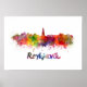 Reykjavik Skyline in Aquarellfarben-Spritzern mit Clipppfad