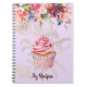 Notebook, anpassbarer Text im Vordergrund. Mischung von Sommerferien-Blume mit einem rosa Kuchen.