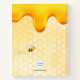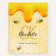 Gelber, weißer Hintergrund mit einem Bienenwabenmuster und glücklich lächelnden Hummeln. Dekoriert mit süßem, goldenem Honig, der tropft. Personalisieren Sie Ihren Namen, Monogramm-Initialen und einen Titel mit goldenen und schwarzen Buchstaben und fügen Sie diese hinzu. Der Name wird mit einem handgeschriebenen Stilskript geschrieben. Für Ihre Desserts, Süßigkeiten, Bäckereirezepte.