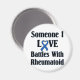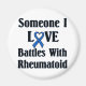 rheumatoide Arthritis RA Design. Unterstützung und Sensibilisierung für die rheumatoide Arthritis, eine schmerzhafte, schwächende Auto-Immunerkrankung. Enthält das RA-blaue Farbband für Bewusstsein und die Wörter "Jemand, der in der Liebe mit Rheumatoid kämpft"
