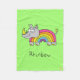 Lassen Sie sich von Ihrem Lieblingstier, dem Nashorn, verwöhnen, mit dieser hübsch niedlichen, grünen Rhinbow-Fleecedecke! Ein kleines Rhinozeros, ein kleiner Regenbogen und eine Menge bunter Spaß!