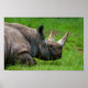 Der majestätisch aussehende Rhino hat eine Erholung im Gras. Seine wunderschönen Hörner abstellen.