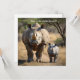 Dies ist ein von der KI generiertes Bild. Ich dachte, es wäre schön, ein Nashorn mit Baby für eine Babyankündigung zu haben.