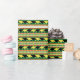 Schwarz-Gelb-Nashörner-März über grüne Streifen abwechselnd mit locker "gewebten" Streifen in afrikanischen Farben Rot, Schwarz und Grün mit gelben Akzenten.