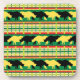 Schwarz-Gelb-Nashörner-März über grüne Streifen abwechselnd mit locker "gewebten" Streifen in afrikanischen Farben Rot, Schwarz und Grün mit gelben Akzenten.
