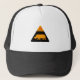 Ein schwarz-gelbes stilisiertes Schild mit einem roten "R"-Buchstaben, geschrieben "Rhinoceros"