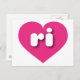 Diese Postkarte zeigt ein lebendiges, heiß rosa Herz mit den fett gerundeten, weißen Buchstaben ri, eine spielerische Version der Abkürzung für Rhode Island, den Ozean Staat.