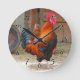 Rhode Island Red Rooster Crowing in Barnyard Runde Wanduhr
