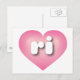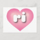 Auf dieser Postkarte befindet sich ein rosafarbenes Herz mit weißem Waschbecken, in dem die fett-, weiß- und abgerundeten Kleinbuchstaben ri enthalten sind, eine spielerische Abkürzung für Rhode Island, den Ozean Staat. Die Rückseite der Karte ist leer und wartet auf Ihre handgeschriebenen Stimmungen oder Ihren personalisierten Text.