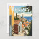 Rhodes Retrovektorreisdesign. Rhodos, die größte der Dodekaner-Inseln Griechenlands, ist bekannt für seine Badeorte und die alten Ruinen.