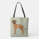 Desteis originelle Cartoon-Illustration eines bewundernswerten Rhodesier Ridgeback Hundes. Der Hund wird von der Seite abgebildet, während er stehend ist und in Richtung Betrachter schaut. Der Hund ist rötlich braun, und auf dem Gesicht des Hundes sind dunkle Details wie Nase und Augen zu sehen. Der Schwanz des Hundes kurbelt leicht und ist dunkler gegen die Spitze. Die Hintergrundfarbe ist grün mit einer hellen Textur. Die Hintergrundfarbe kann auf eine andere Farbe geändert werden und die Textur kann entfernt werden, wenn dies gewünscht ist.