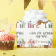 Desteis originelle Cartoon-Illustration einer niedlichen Rhodesier Ridgeback Rasse Hund. Der Hund wird in einer bunten Geburtstagslandschaft mit pastellfarbenen Geburtstagsballons, Geschenken und einem bunten Banner platziert. Die Pastellfarben Rosa, Grün, Blau, Rot, Orange und lila. Es gibt auch einen personalisierbaren Textbereich.