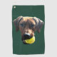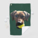 Rhodesian Ridgeback at Play Golf Towel mit handgezeichnet Design von ArtistsQuest verfügt über eine niedliche und spielerische Rhodie mit einem Tennisball in seinem Mund.