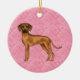Rhodesian Ridgeback Hund auf rosa Herzen mit Namen Keramik Ornament