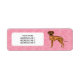 Desteis originelle Cartoon-Illustration einer niedlichen Rhodesian Ridgeback züchtet Hund auf rosa Hintergrundfarbe mit einem Herzmuster in verschiedenen Größen. Es gibt auch einen personalisierbaren Textbereich für benutzerdefinierte Adressinformationen oder einen anderen Text.