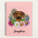 Desteis originelle Cartoon-Illustration einer bezaubernden Rhodesian Ridgeback züchtet Hunde den Kopf nah aufwärts, umgeben von bunten Wildblumen im Sommer. Es gibt eine rot-rosa Blume, eine lila Blume, eine dunkelrosa Blume und eine weiße, dunkle Blume mit grünen Blätter und Ästen. Die Hintergrundfarbe ist pink mit einem hellen Polka-Punktmuster. Die Hintergrundfarbe kann auf eine andere Farbe geändert werden, und das Polka Punktmuster kann nach Wunsch entfernt werden. Es gibt auch einen personalisierbaren Textbereich.