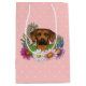 Rhodesian Ridgeback Hund Kopf-Wildblumen auf rosa Mittlere Geschenktüte
