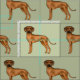 Desteis originelle Cartoon-Illustration einer niedlichen Rhodesier Ridgeback Rasse Hund. Die Hintergrundfarbe ist grün.