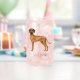 Desteis originelle Cartoon-Illustration einer niedlichen Rhodesier Ridgeback Rasse Hund. Der Hund ist stehend und schaut zum Betrachter. Es gibt auch einen personalisierbaren Textbereich für einen Namen oder einen anderen benutzerdefinierten Text.