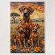 A majestic Rhodesian Ridgeback family scene set in a glowing savanna landscape. Featuring a proud adult dog and two adorable puppies, this artwork captures strength, warmth, and wild natural beauty—perfect for dog lovers and bold decor.