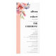 This BUDGET wedding ceremony and party program is beautifully designed with a white frame and a peach-pink border on the left side, giving it an elegant touch. In the upper left corner, there is a branch of rhododedron adorned with peach-pink flowers, adding a natural and romantic element to the overall design. The text is highlighted in bold typography, making it stand out and easy to read. The back of the program is a calming peach-pink color, tying the whole look together seamlessly.