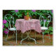 Der altmodische Tisch und Stühle in einem rhododendron-Garten.