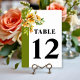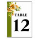 Rhododendron-Zweig mit orange-gelben Blüten Hochzeitstisch-Nummernkarte. Erhöhen Sie Ihre Hochzeitsfeier mit dieser wunderschön gestalteten Tisch-Nummernkarte mit einem zarten, aquarellfarbenen Rhododendron-Zweig, geschmückt mit orange-gelben Blüten und grünen Blättern. In der oberen linken Ecke platziert, schafft die botanische Illustration einen romantischen, auffallenden Mittelpunkt. Ein olivgrüner Rand entlang der linken Seite verleiht eine verfeinerte Note der Eleganz, während eine bold, stilvolle Typografie eine exzellente Lesbarkeit gewährleistet.