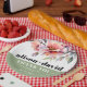 Rhododendron peach-pink flowers typography wedding pappteller
