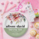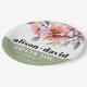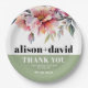 Rhododendron peach-pink flowers typography wedding Paper Plate. This elegant wedding paper plate showcases a beautiful rhododendron branch adorned with delicate peach-pink flowers and greenery at the upper part. The couple's names are prominently displayed in bold typography, adding a personal touch to the design. A heartfelt message of 'Thank You' is also included, expressing gratitude to the guests. Completing the look, a stylish sage green band gracefully adorns the bottom of the napkin, adding a touch of sophistication to any wedding celebration.