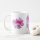 Diese Tasse ist mit drei eleganten rosa und magenta rhododendron Blume dekoriert.