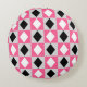 Rhombus Diamond, rosa, Schwarz-weiß geometrisch Rundes Kissen