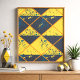 Dieses Kunstwerk zeigt ein lebendiges Gitter von rhombus Formen, die sich diagonal in kontrastierende Hälften von hellgelb und tiefgrau aufteilen. Über die Oberfläche brechen energetische Ausstrahlungen von lebhaften blauen und kleinen gelben Flecken die starre Geometrie ab und fügen Bewegung und Spontaneität hinzu. Bei jedem Rhombus werden dünne orangefarbene Linien Kontur, wodurch die Struktur verbessert wird und gleichzeitig die spielerischen, abstrakten Farbeffekte sichtbar werden. Die sich wiederholende Anordnung schafft ein harmonisches Gleichgewicht zwischen präziser Form und expressivem Chaos.
