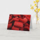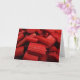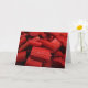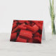 Diese leere Notizkarte zeigt die Nahaufnahme von kunstvollen Rhabarber Stalks (Rheum rhabarbarum), die zum Kuchen oder Sauce aufgeschnitten sind. Die Anordnung der Stücke und die schöne rote Farbe schaffen ein interessantes abstraktes Muster. Manchmal als Obst und manchmal als Gemüse, ist diese Kräuterpflanze eine der ersten Frühlingsesser im Garten. Die Wurzeln werden in der traditionellen chinesischen Medizin verwendet.