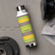 Three-color design with rhythmic stripes. Horizontal lines in three strong colors for your sports water bottle. Add your name or text. This variant is the bright color scheme in brown, yellow and green.