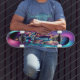 Dieses lebendige Design besticht durch einen coolen Katz-DJ im Herzen eines Party auf der Dachterrasse, das Set vor dem Hintergrund einer Skyline der Stadt. Kopfhörer tragen und selbstbewusst Beats mischen, verkörpert die Katze die Verschmelzung des städtischen Nachtlebens mit dem entspannten coole, das "Die Coole Katzen-Sammlung" definiert. Farbenfrohe Lichter, Tanzfiguren und Neonakzente beleben das lebendige Party und machen dieses Skateboard zu einem Muss für Musikliebhaber, Skateboardfans und Katzenliebhaber gleichermaßen.