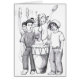Eine Achtergruppe Jugendliche sind gesehenes Tanzen und Spielen von Musik. In der Front sind zwei junge Männer jeder mit den Trommelstöcken, die eine große Trommel schlagen. Hinter ihnen sind sechs andere junge Männer und Frauen. Ein Mädchen wird gesehen, einen Tambourine zu spielen. Ein junger Mann spielt die Becken. In der Rückseite hebt ein junger Mann einen Trommelstock in die Luft an. Sie sind alle glückliche spielende Musik und Tanzen zum Rhythmus. Konzept entworfen und durch Lee Serenethos in Auftrag gegeben. Durch John Wampler in Schwarzem zeichnen, weiß, grau. 1_rhythm_drum_dancing_people_OPG200X10